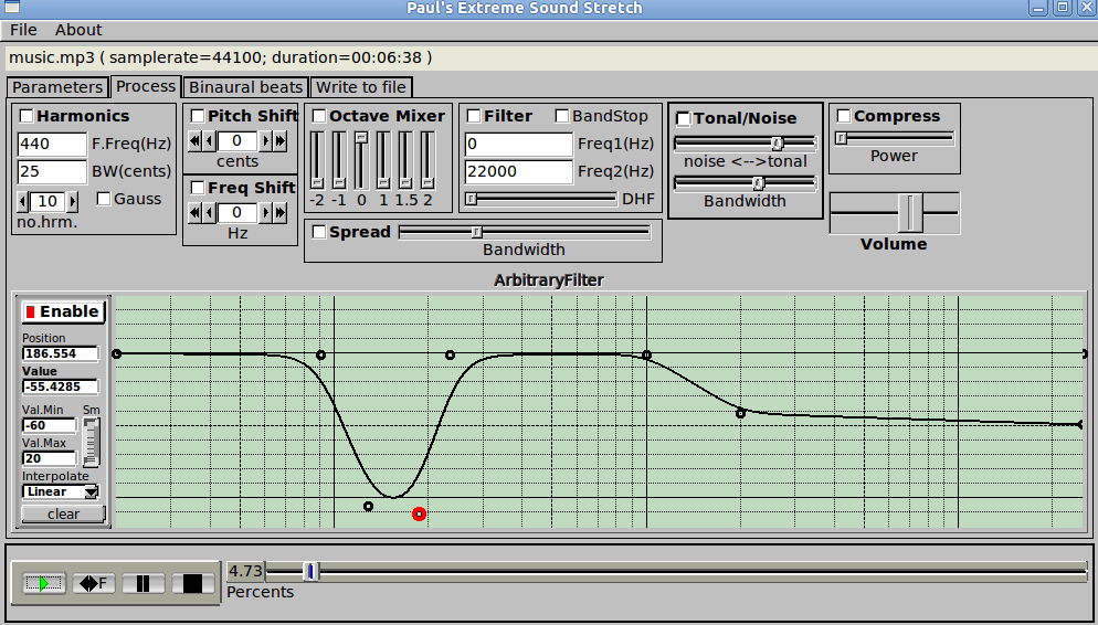 - Added a frequency shifter which produces binaural beats (the beats frequencies are variable)