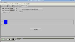 Before starting, you need to open a WAV, OGG VORBIS or MP3 file. You can open it by using the file menu, by launching the program with a command-line argument or (on linux systems) by drag a file from explorer and drop it on the filename bar(under the menu).